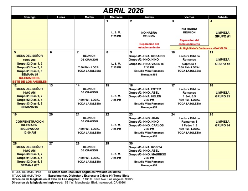 Welcome to the website of the church in South Gate, California. We are lovers of the Lord Jesus Christ who are seeking to grow in Christ as our life (John 11:25; 14:6; Col. 3:4) for the building up of His Body, the church (Eph. 4:15-16). We exalt Christ as the preeminent one in the universe and in our lives (Col. 1:15-18) and endeavor to bear a testimony of the oneness of the Body of Christ by receiving all genuine believers in fellowship (Rom. 15:7; 1 Cor. 1:9). View more posts