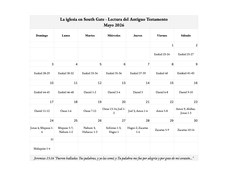 Mayo – Lectura de la Biblia