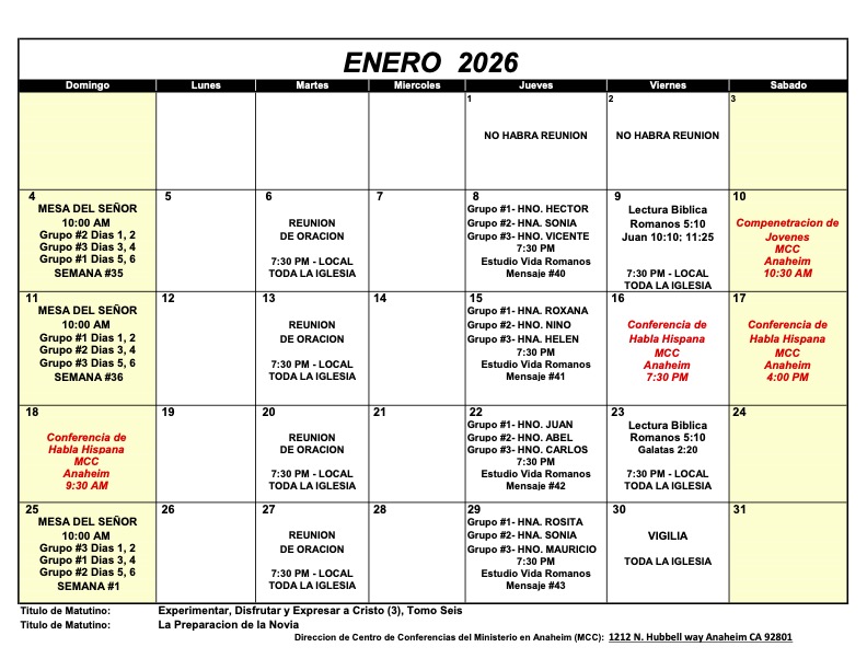 Calendario – Enero 2026