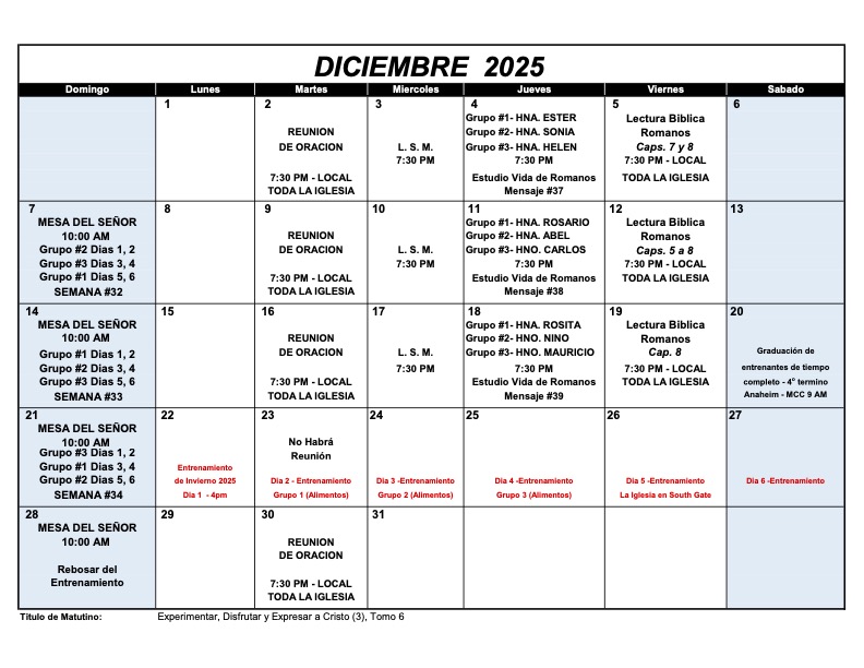 Calendario – Diciembre 2025