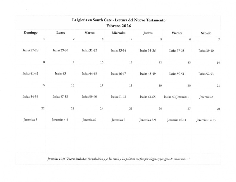 Horario de Lectura Febrero